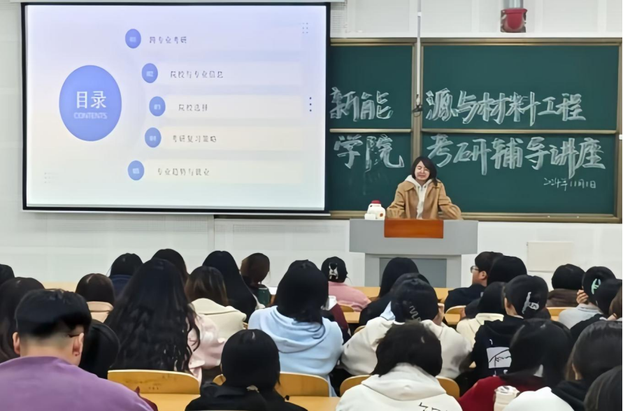 为帮助有意向考研的学生更好的理解考研过程,掌握科学备考方法,明确考研方向及目标,11月1日,太阳集团tyc539特邀赵瑾老师在南楼-426组织开展“考研辅导”讲座。学院相关老师及辅导员,22-23级化学能源化学班全体学生参加。